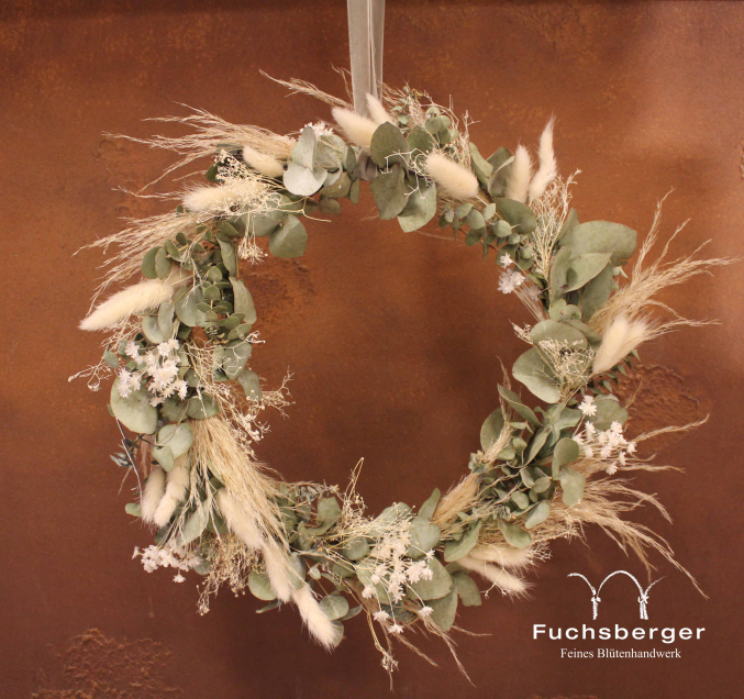 Stylisher Loop mit Eucalyptus und Trockenblumen/-gräsern
